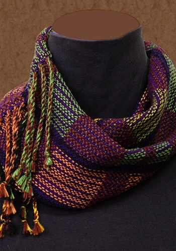 Make two scarves, one for you, and one for a friend. All the mercerized yarn and instructions to make two scarves that shift through 6 purplish yarns. The finished size of each scarf is approximately 8” x 60” plus 4” fringe on either end. The texture of the scarves is made by using a 3-shaft pattern (with the use of a pickup stick if you have a rigid heddle loom), and the scarves are very soft and supple.