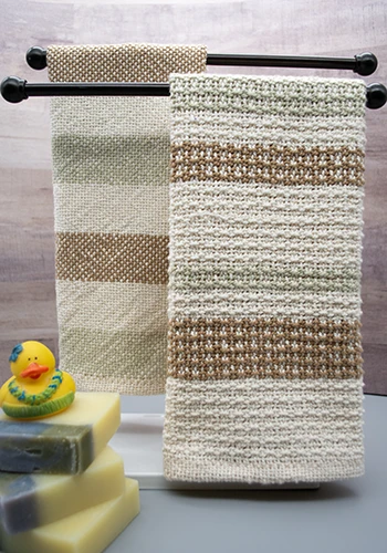 Play with color in this 8-shaft false Damask 2 towel kit featuring 4 colors of our Tubular Spectrum™ mercerized cotton yarn. The towels are woven on the same warp, just change the weft color for the large blocks on the second towel. The false damask creates blocks of color that appear to be woven together! And with the warp already wound, it’s a fun, fast, easy weave.