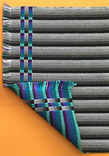These instructions will help you weave your very own colorful set of 4 reversible placemats. These colorful two-sided placemats will elevate your dining to new heights! Add the full WIF file if you want to play with the draft in your weaving software or use the WIF file to weave the placemats on your loom. The WIF file shows all the picks needed to weave the placemats. Happy dining!