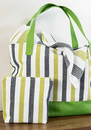 Get ready for the beach or pool! This lovely Cabana Tote bag set was designed by Deborah Sykes. Enough yarn for both the tote bag and the accessory pouch. The instructions are published in Handwoven magazine, Summer 2025 issue. You can obtain a copy of the instructions from Long Thread Media. Click here for instructions. Please note you will need some additional fabric for the bottom of the bag and the handles.