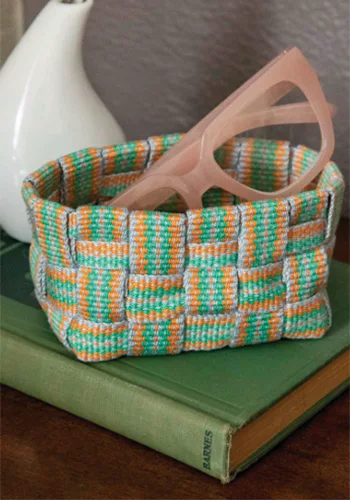 This bright and cheerful basket is made by weaving inkle bands. It was designed by Jennifer B. Williams and is featured in Little Looms Spring 2025 issue, pages 84-86. Make the bands and create your own basket! The instructions are available in the magazine, and online from Long Thread Media. Click here for instructions.