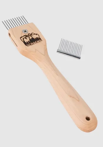 The new Duet tapestry beater is the perfect tapestry tool! Each beater comes with interchangeable metal combs: 8 ends per inch and 12 ends per inch. To change combs, just loosen the screw in the handle, swap out the comb, and then retighten the screw! What tapestry will you weave next?