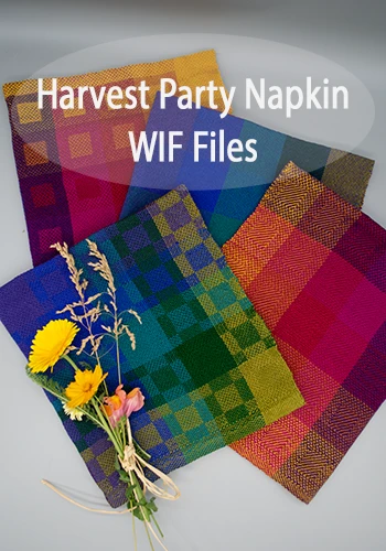 These are the full drafts for the Harvest Party Napkins. Ready to use with your weaving software. All of our WIF files show the complete threading and treadling. The 4-shaft variation comes with one WIF file with a straight twill threading. The 8-shaft variation comes with 2 WIF files with the same threading, but different tie up and treadling.