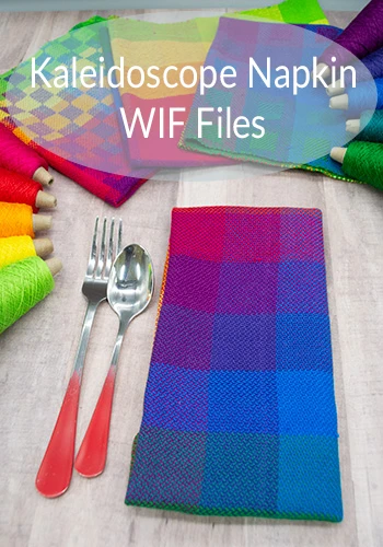 These are the full drafts for the Kaleidoscope Napkins. Ready to use with your weaving software. All of our WIF files show the complete threading and treadling. The 4-shaft variation comes with one WIF file with a straight twill threading. The 8-shaft variation comes with 2 WIF files with the same threading, but different tie up and treadling.
