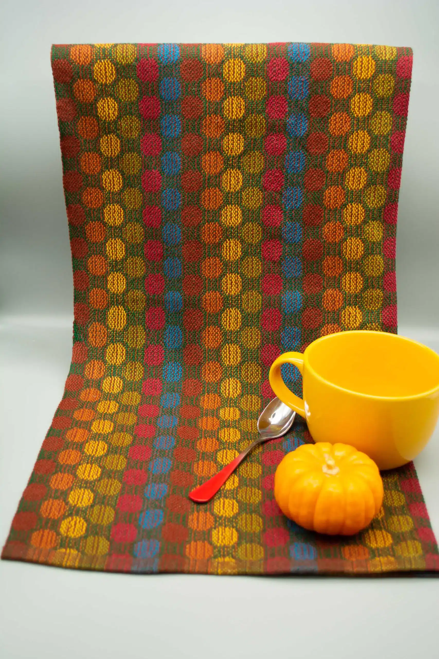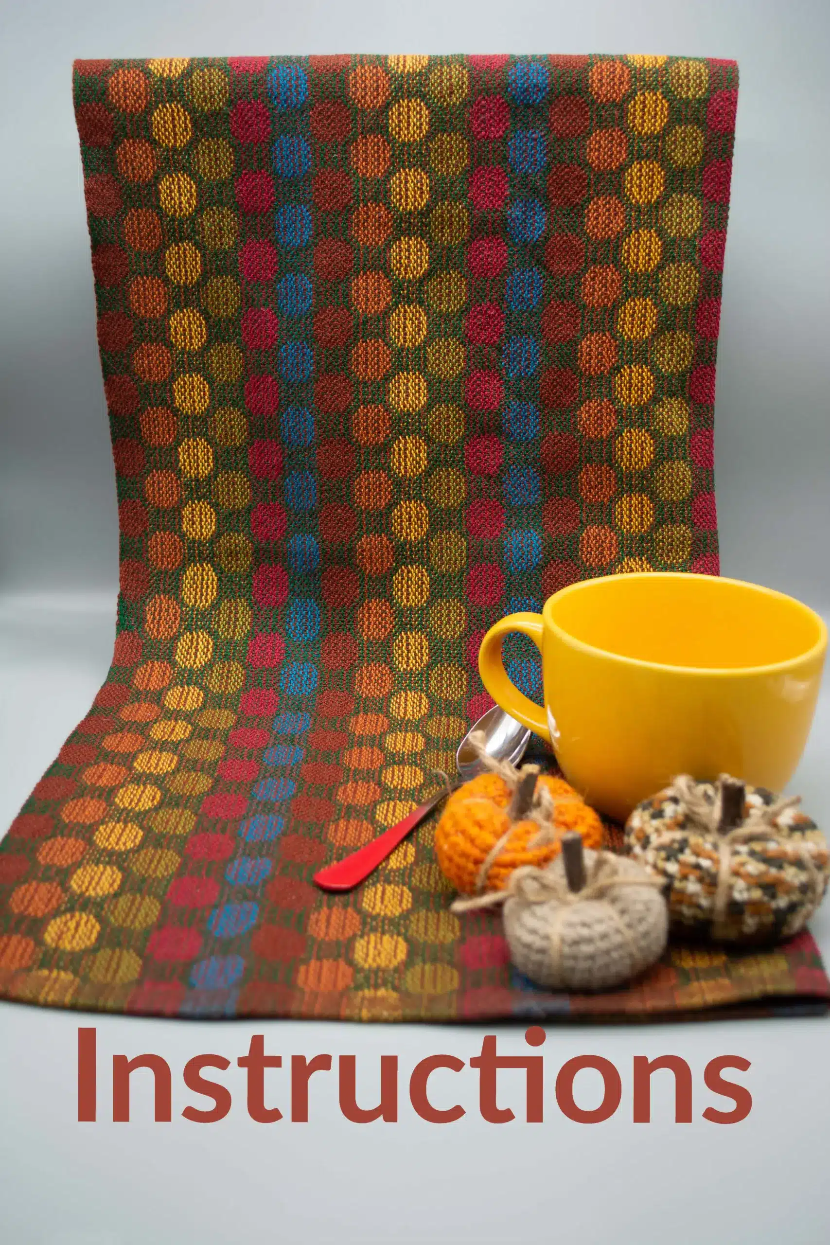 - 4 towels (approximately 15.5” X 24” (hemmed). Each towel has a solid color weft (2 towels use Copper, and 2 use Burnt Umber for weft).