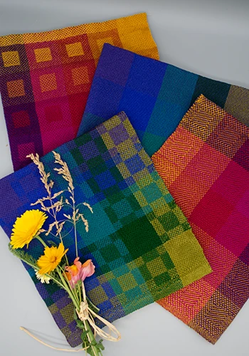 - 1.5 oz cone of 10/2 Tubular Spectrum™ mercerized cotton yarns: Gold, Copper, Cranberry, 5 Red Purple, 5 Purple, 10 Purple Blue, Cobalt, 10 Blue Green, Forest, Kelp.