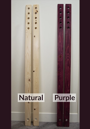 We started staining our poles with purple stain so that no one would use the lumber for other uses around the house. However, we know that not everyone has someone who will make off with their boards, so we have the poles available in both Natural and Purple Stain. Both are coated with a topcoat of polyacrylic for durability.