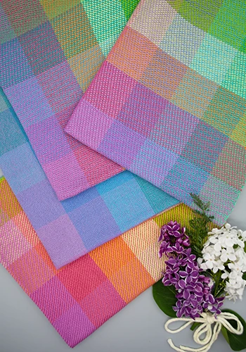 These are the full drafts for the Springtime Tea Party Napkins. Ready to use with your weaving software. All of our WIF files show the complete threading and treadling. The 4-shaft variation comes with one WIF file with a straight twill threading. The 8-shaft variation comes with 2 WIF files with the same threading, but different tie up and treadling.