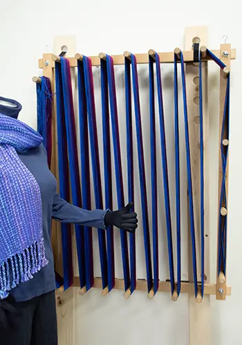 - Using rubber bands around the pegs also works as a great way to mark the path of your warp so that you can wind a second warp the same length as the first.